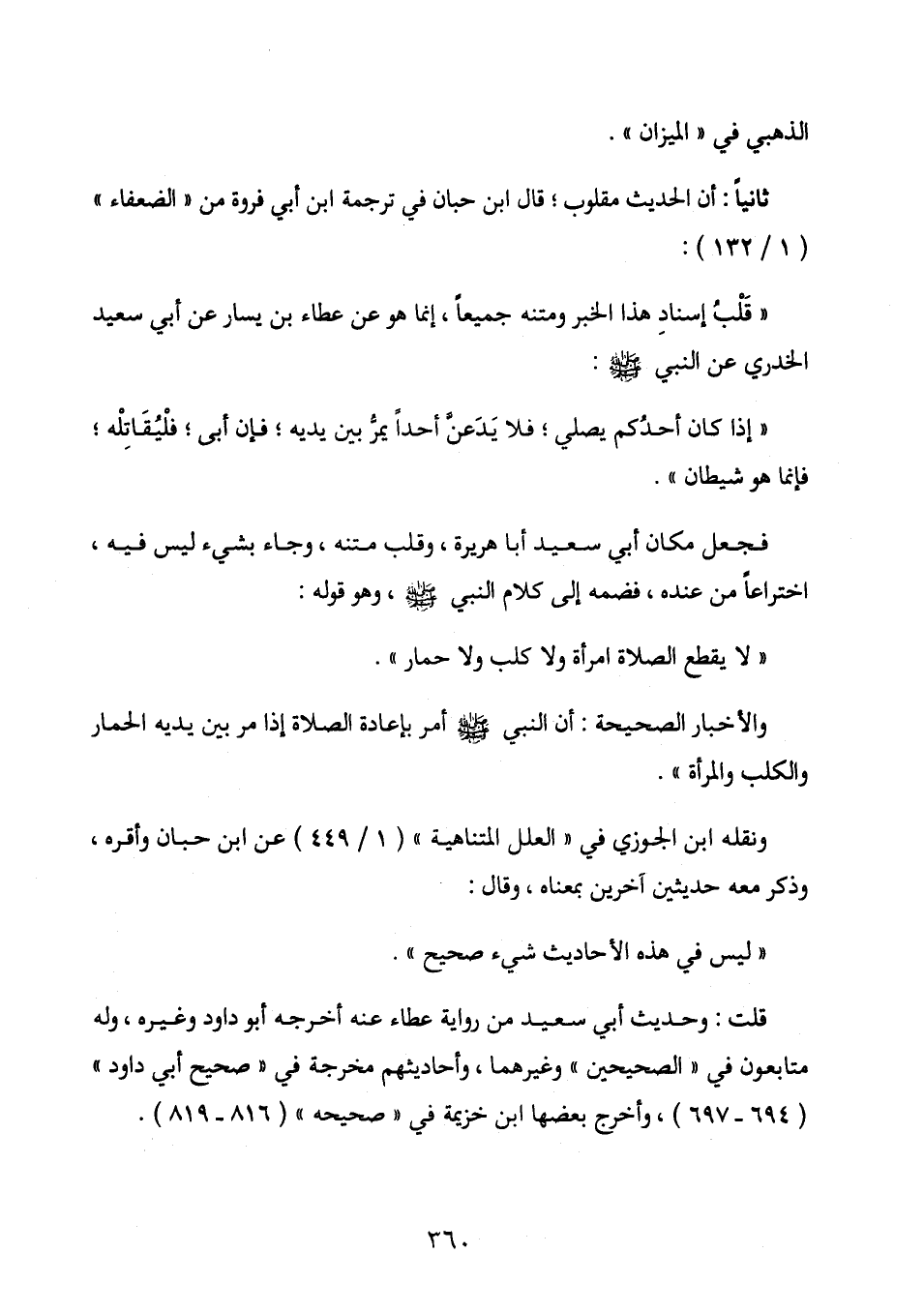 فجعل مكان أبي سعيد أبا هريرة؛ وقلب متنه، وجاء بشيء ليس فيه، اختراعا من عنده، فضمه إلى كلام النبي - صلى الله عليه وسلم -، وهو قوله:
