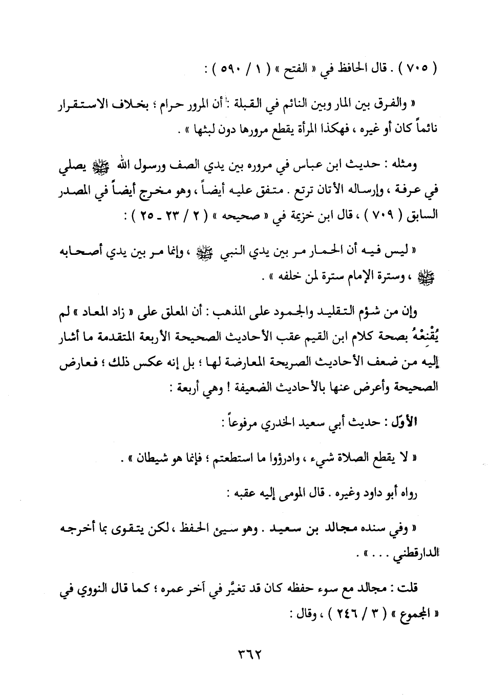 ومثله: حديث ابن عباس في مروره بين يدي الصف ورسول الله - صلى الله عليه وسلم - يصلي في عرفة، وإرساله الأتان ترتع. متفق عليه أيضاً، وهو مخرج أيضاً في المصدر السابق (709) ، قال ابن خزيمة في " صحيحه " (2 / 23 - 25) :