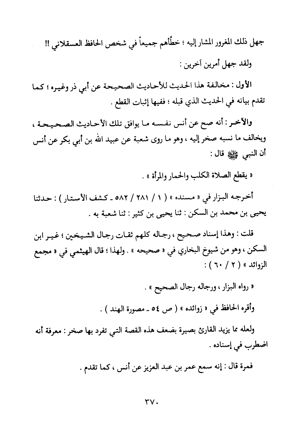 والآخر: أنه صح عن أنس نفسه ما يوافق تلك الأحاديث الصحيحة، ويخالف ما نسبه صخر إليه، وهو ما روى شعبة عن عبيد الله بن أبي بكر عن أنس أن النبي ? قال:
