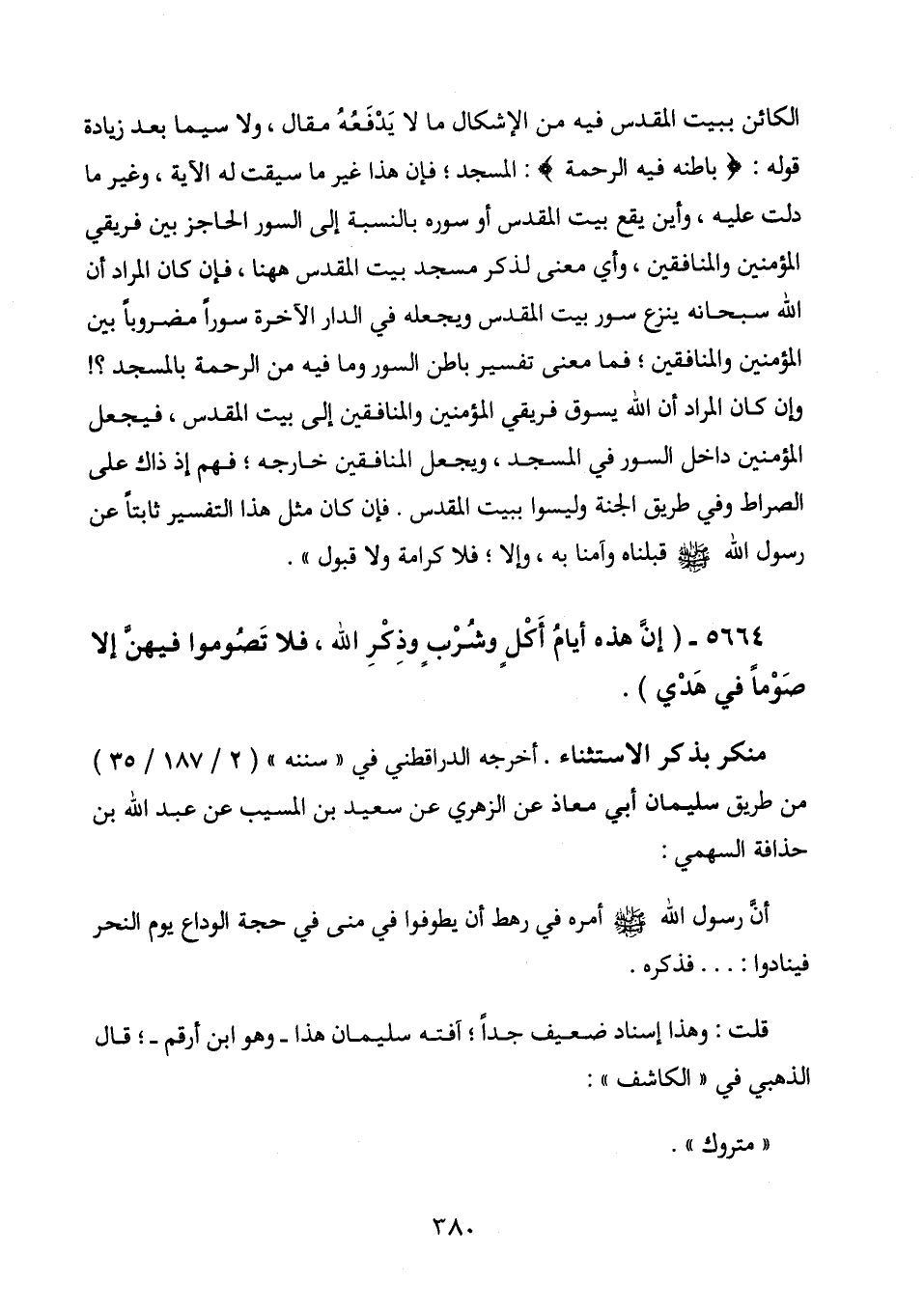 5664 - (إِن هذه أيام أكل وشرب وذكر الله, فلا تصوموا فيهن إلا صوما في هدي) .
