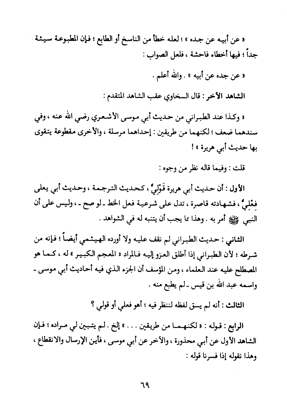الرابع: قوله: «لكنهما من طريقين. . .» إلخ. لم يتبين لي مراده؛ فإن الشاهد الأول عن أبي محذورة , والآخر عن أبي موسى، فأين الإرسال والانقطاع , وهذا نقوله إذا فسرنا قوله: