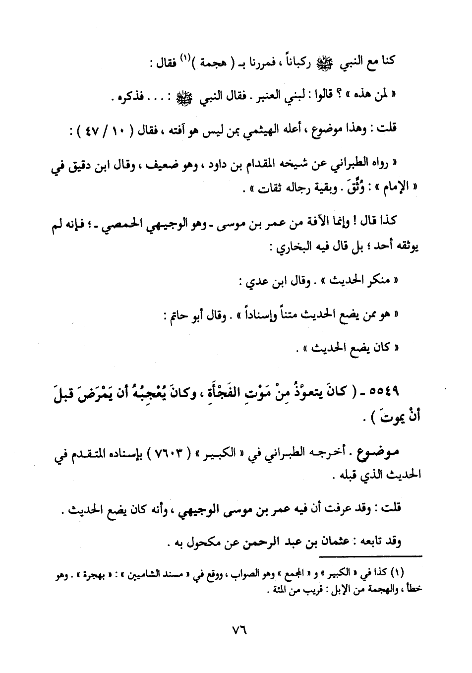قُلْتُ: وَقضدْ عَرَفْتَ أَنَّ فِيهِ عُمَرُ بْنُ مُوسَى الْوَجِيهِِيُّ، وَأَنَّهُ «كَانَ يَضَعُ الْحَدِيثَ» .