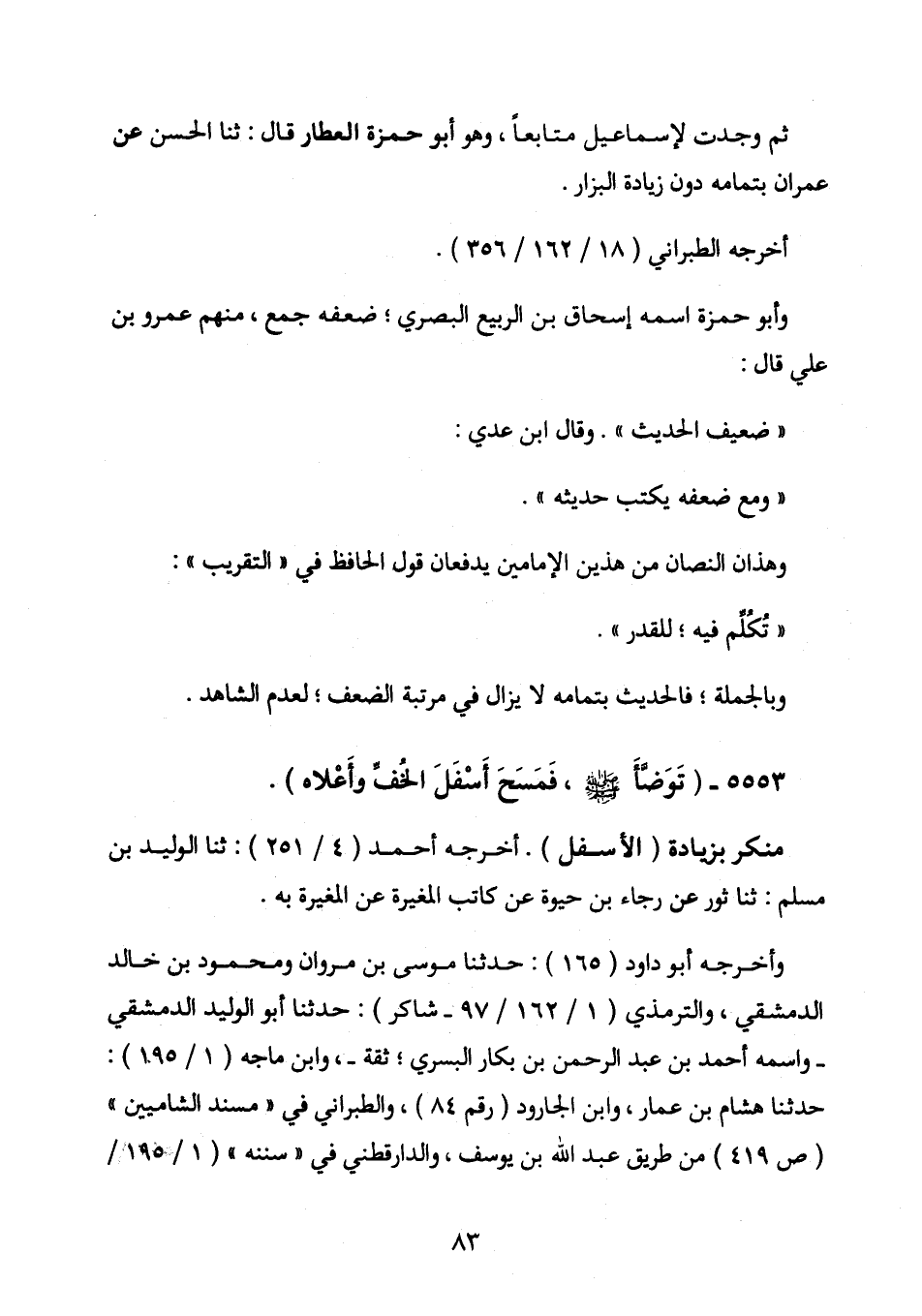 5553 - (توضأ صلى الله عليه وسلم، فمسح أسفل الخف وأعلاه) .