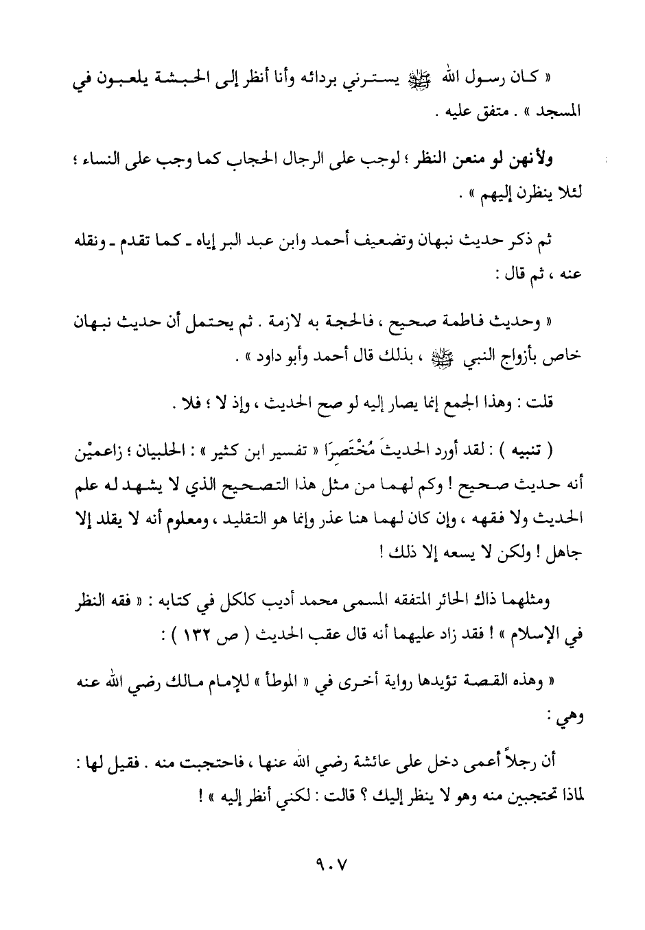 أن رَجُلًا أعمى دخل على عَائِشَة رضي الله عنها، فاحتجبت منه. فقيل لها: لماذا تحتجبين منه وهو لا ينظر إليك؟ قالت: لكني أنظر إليه "!
