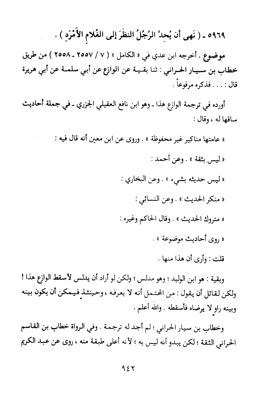 5969 - (نهى أن يُحَدَّ الرّجل النظر إلى الغُلام الأمْرد) .