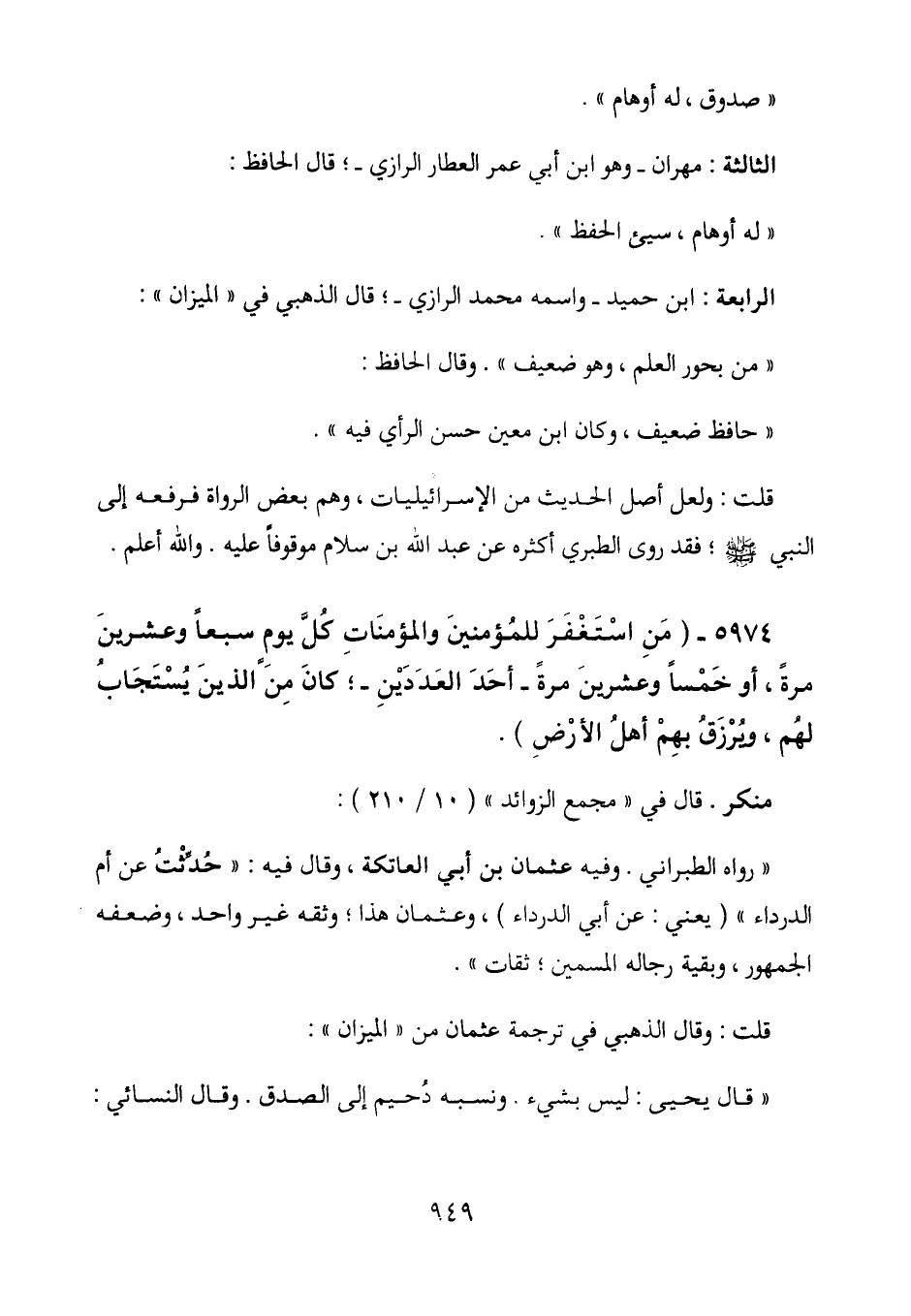 5974 - (من استغفز للمؤمنين والمؤمنات كل يوم سَبْعًا وعشرين مرة، أو خمساً وعشرين مرة - أخذ العددين -؛ كان من الذين يُستجاب