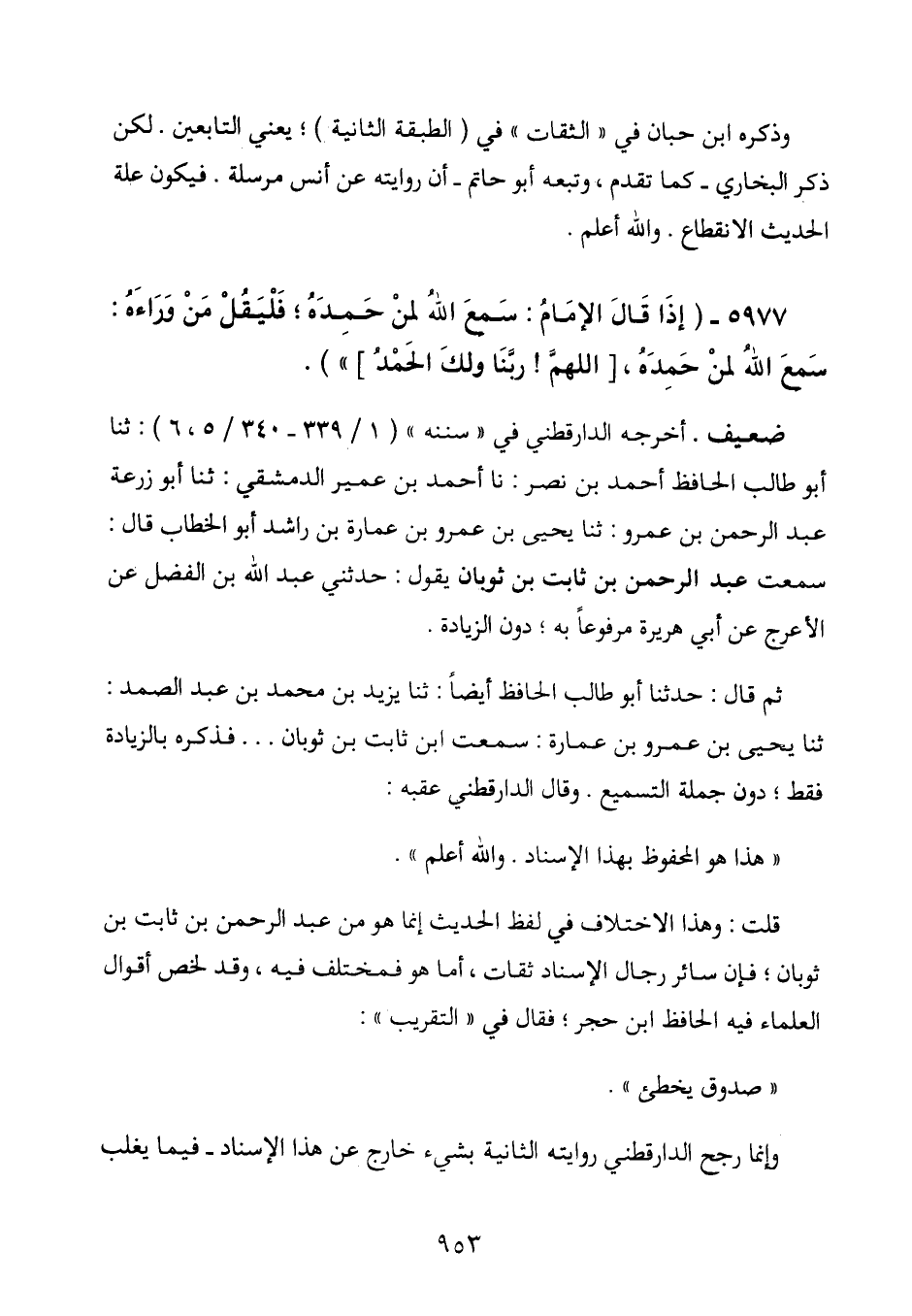 وإنما رجح الدّارقطني روايته الثانية بشيء خارج عن هذا الإسناد - فيما يغلب