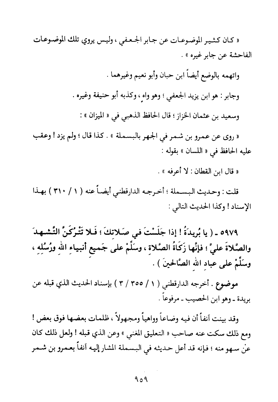 " روى عن عمرو بن شمر في الجهر بالبسملة ". كذا قال؛ ولم يزد! وعقب عليه الحافظ في " اللسان " بقوله: