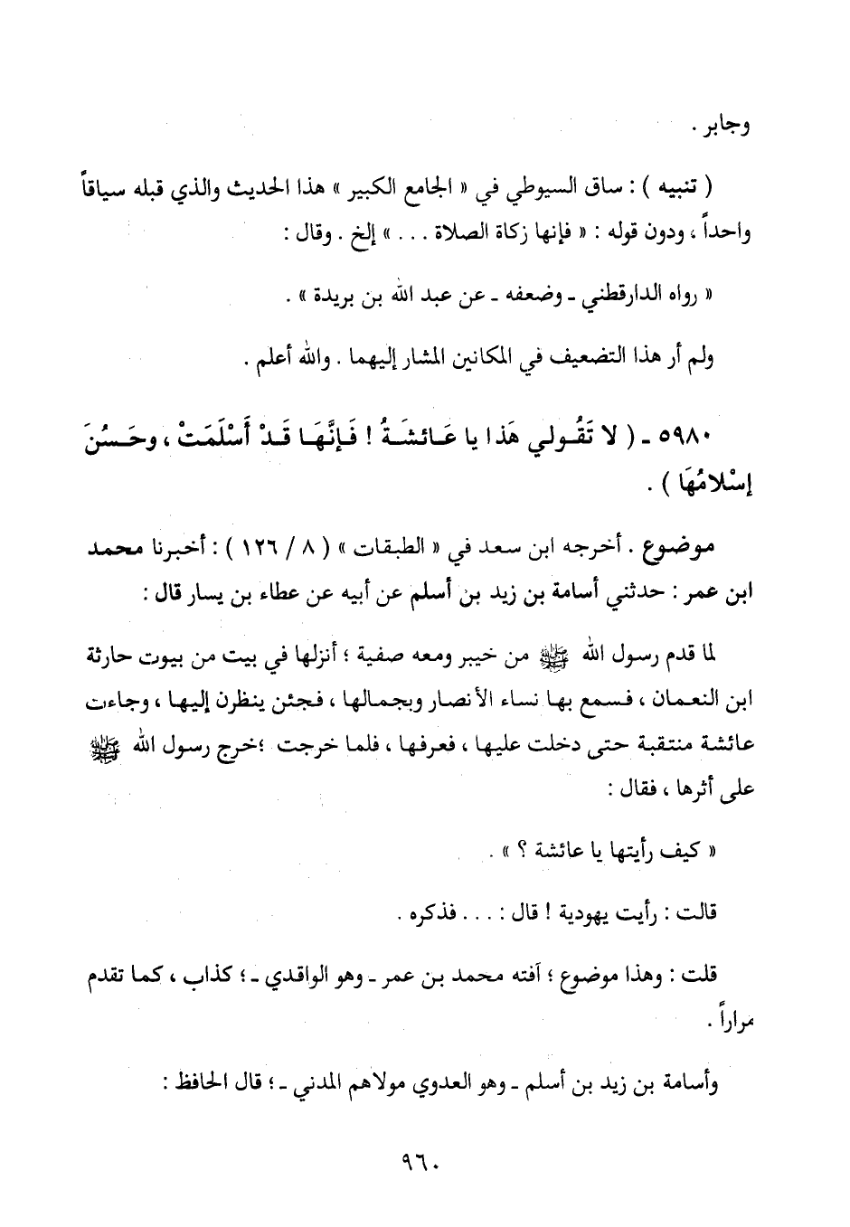 5980 - (لا تَقُولِي هذا يا عائشة! فإنّها قد أسلمت، وحسن