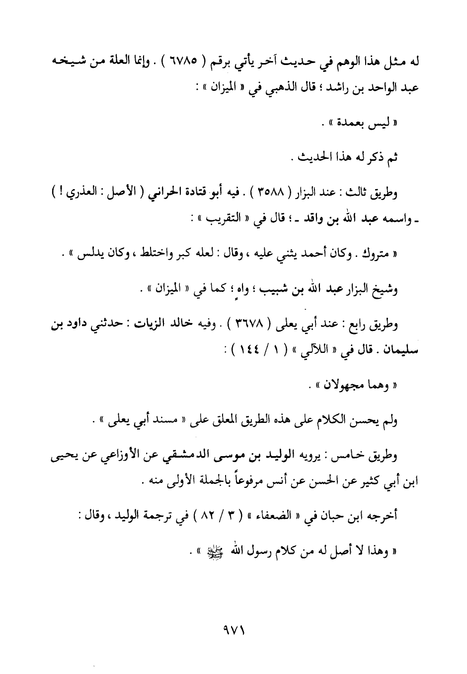 ولم يحسن الكلام على هذه الطريق المعلق على " مسند أبي يعلى ".
