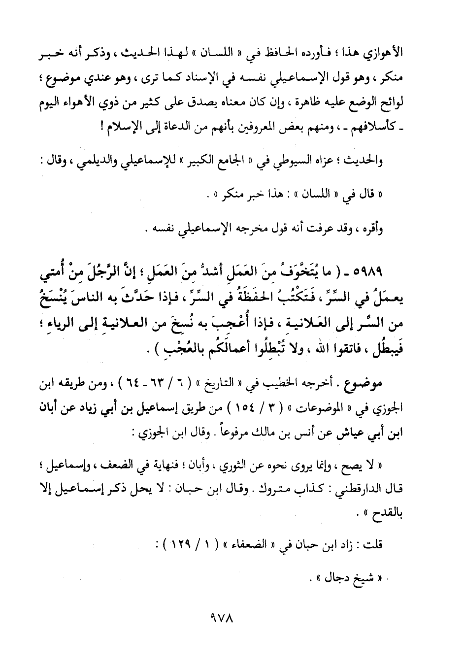 الأهوازي هذا؛ فأورده الحافظ في " اللسان " لهذا الحديث، وذكر أنه خبر منكر، وهو قول الإسماعيلي نفسه في الإسناد كما ترى، وهو عندي موضوع؛ لوائح الوضع عليه ظاهرة، وإن كان معناه يصدق على كثير من ذوي الأهواء اليوم - كأسلافهم -، ومنهم بعض المعروفين بأنهم من الدعاة إلى الإسلام!