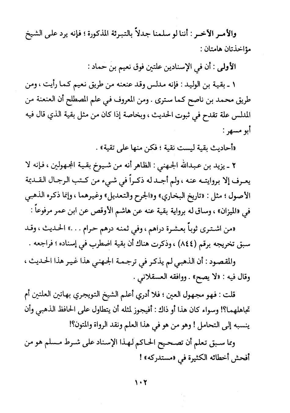 المدلس علة تقدح في ثبوت الحديث، وبخاصة إذا كان من مثل بقية الذي قال فيه