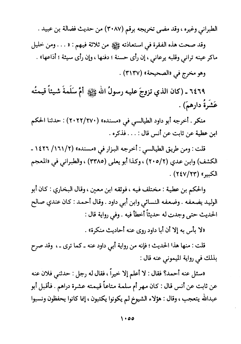 6469 - (كان الذي تَزَوَّجَ عليه رسولُ الله صَلَّى اللَّهُ عَلَيْهِ وَسَلَّمَ أُمَّ سَلَمَةَ شيئاً قِيمَتُهُ