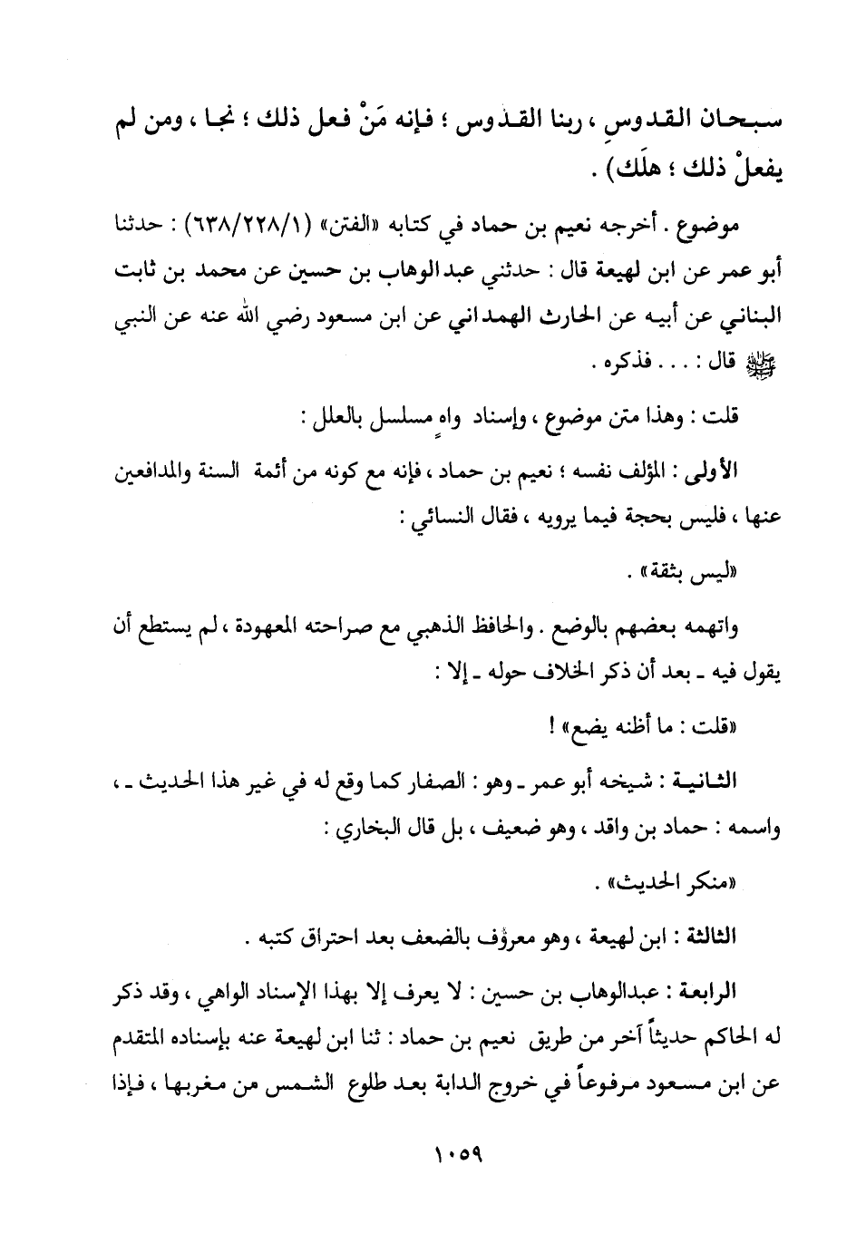 الاولى / المؤلف نفسه؛ نعيم بن حماد، فإنه مع كونه من أئمة السنة والمدافعين