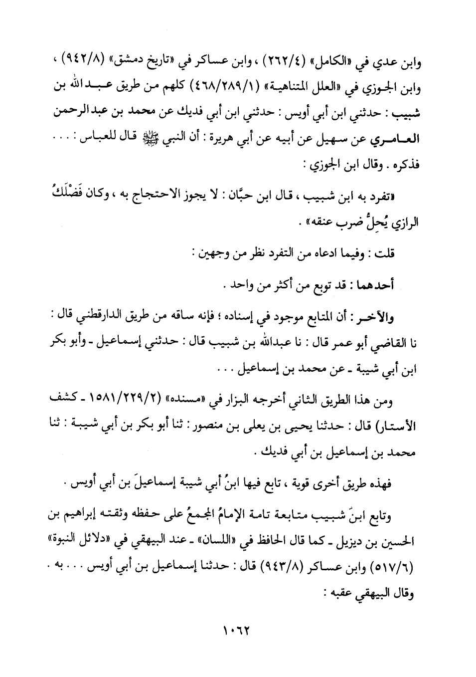شبيب: حدثني ابن أبي أويس: حدثني ابن أبي فديك عن محمد بن عبد الرحمن