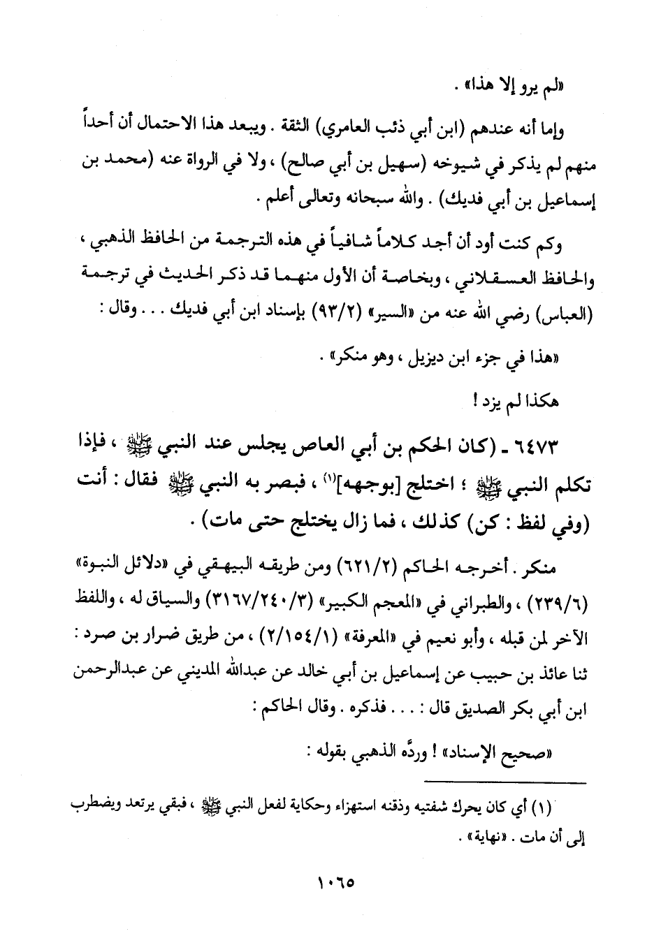 6473 - (كَانَ الْحَكَمُ بن أَبِي الْعَاصِ يَجْلِسُ عِنْدَ النَّبِيَّ صَلَّى اللَّهُ عَلَيْهِ وَسَلَّمَ، فَإِذَا