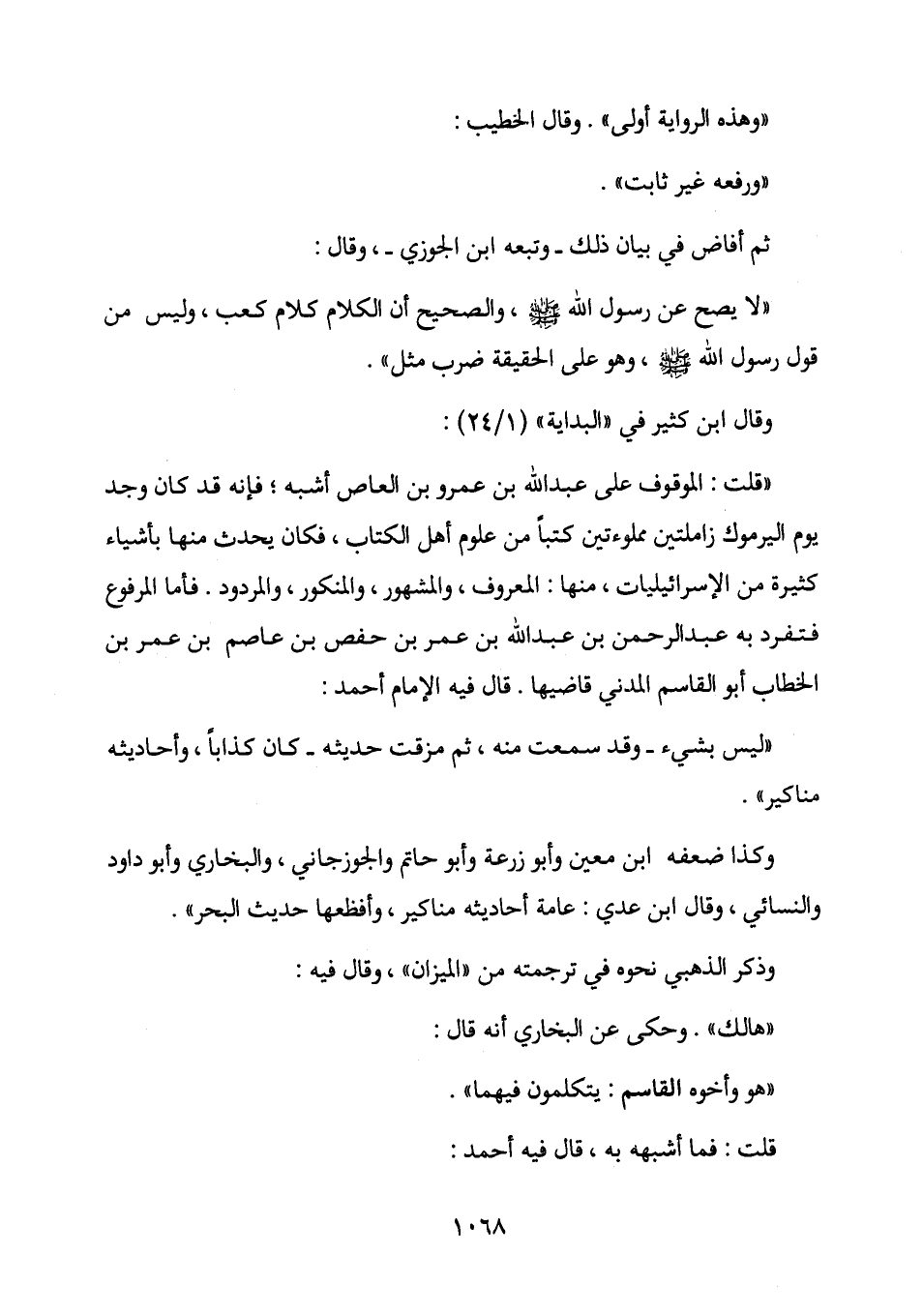 "قلت: الموقوف على عبد الله بن عمرو بن العاص أشبه؛ فإنه قد كان وجد