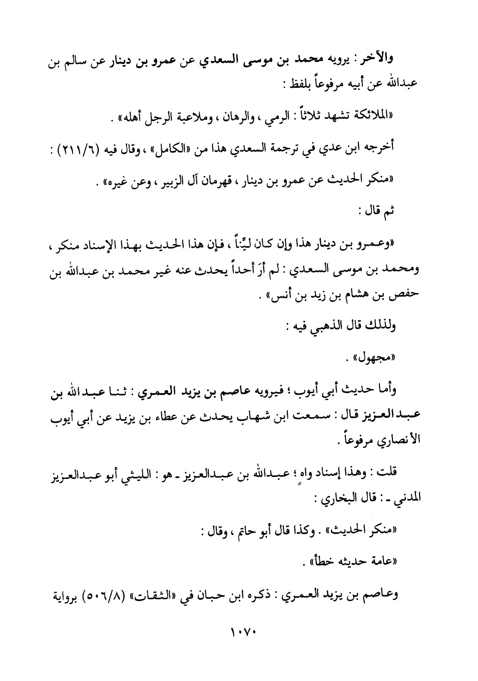 ومحمد بن موسى السعدي: لم أرَ أحداً يحدث عنه غير محمد بن عبد الله بن