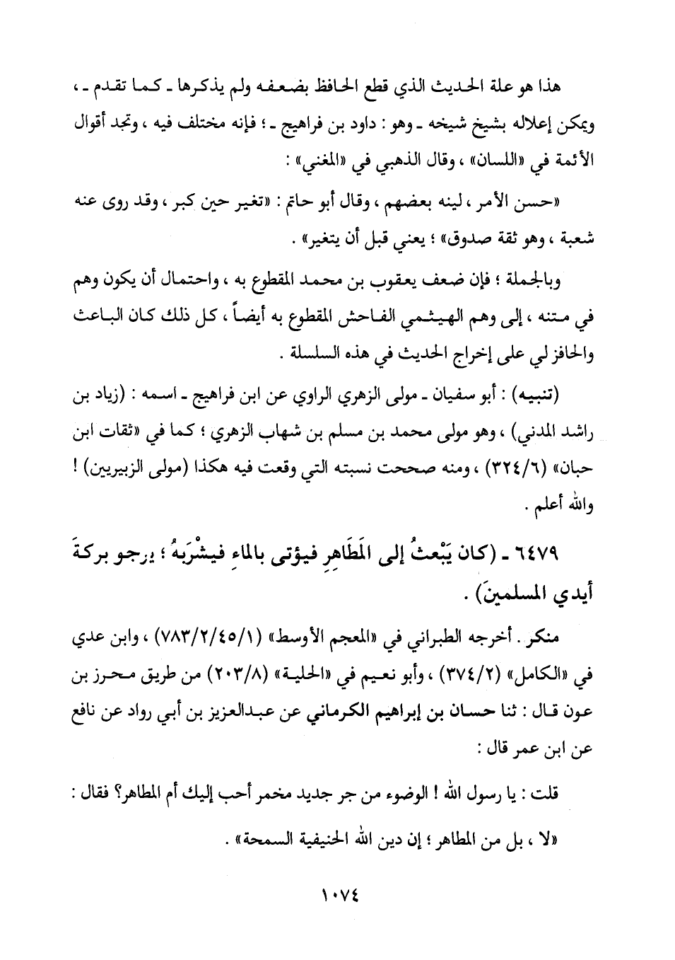 6479 - (كَانَ يَبْعَثُ إِلَى الْمَطَاهِرِ فَيُؤْتَى بِالْمَاءِ فَيَشْرَبُهُ؛ يَرْجُو بَرَكَةَ
