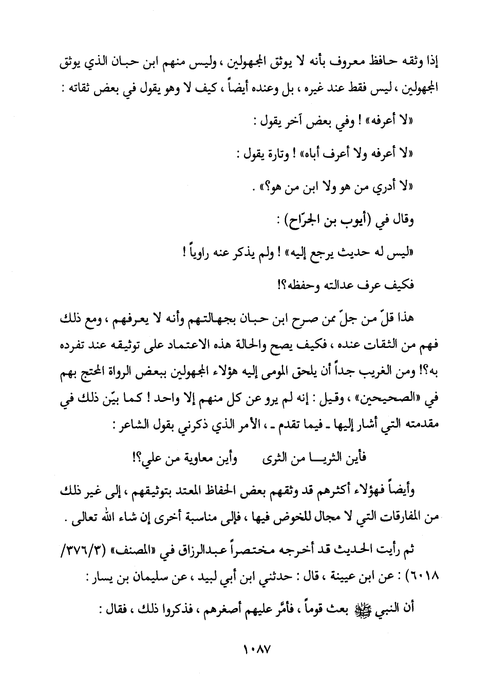 هذت قلّ من جلّ ممن صرح ابن حبان بجهالتهم وأنه لا يعرفهم،ومع ذلك