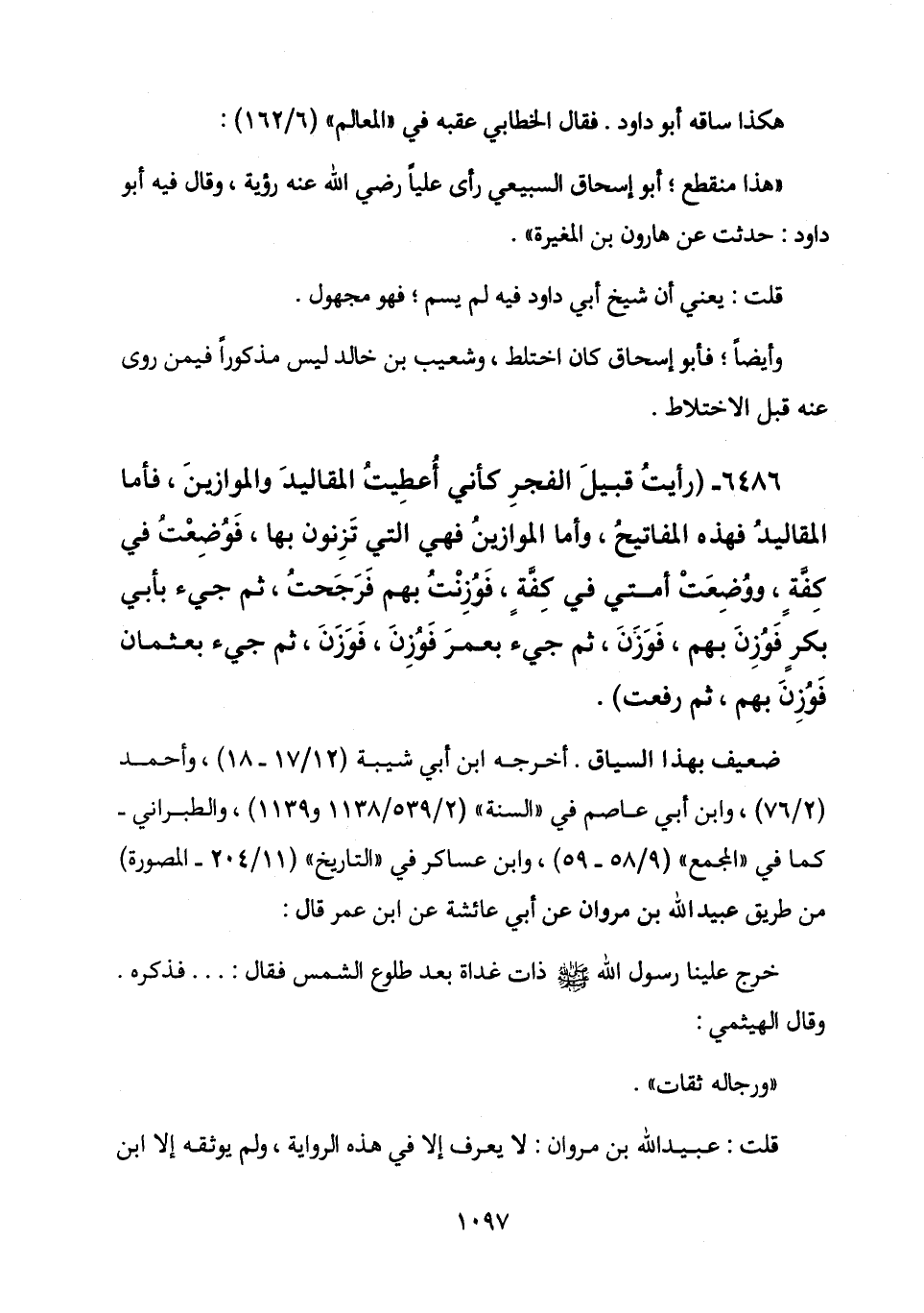 6486 - (رَأَيْتُ قُبَيْلَ الْفَجْرِ كَأَنِّي أُعْطِيتُ الْمَقَالِيدَ وَالْمَوَازِينَ، فَأَمَّا