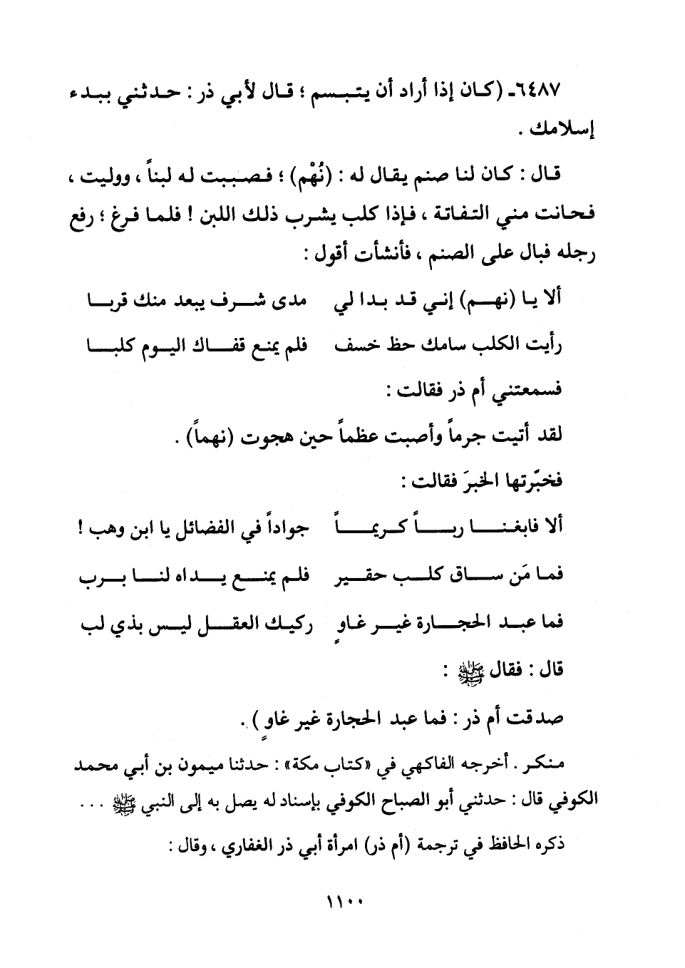 صدقت أم ذر فما عبد الحجارة غير غاو) .
