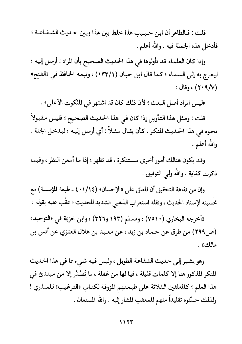 وإن من تفاهة التحقيق أن المعلق على "الإحسان" (14/401 - طبعة المؤسسة) مع