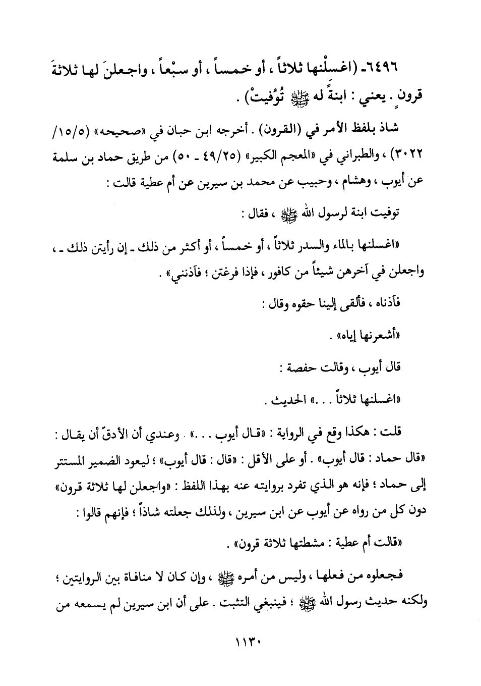 6496 - (اغْسِلْنَهَا، ثَلاثاً، أَوْ خَمْساً، أَوْ سَبْعاً، وَاجْعَلْنَ لَهَا ثَلاثَةَ