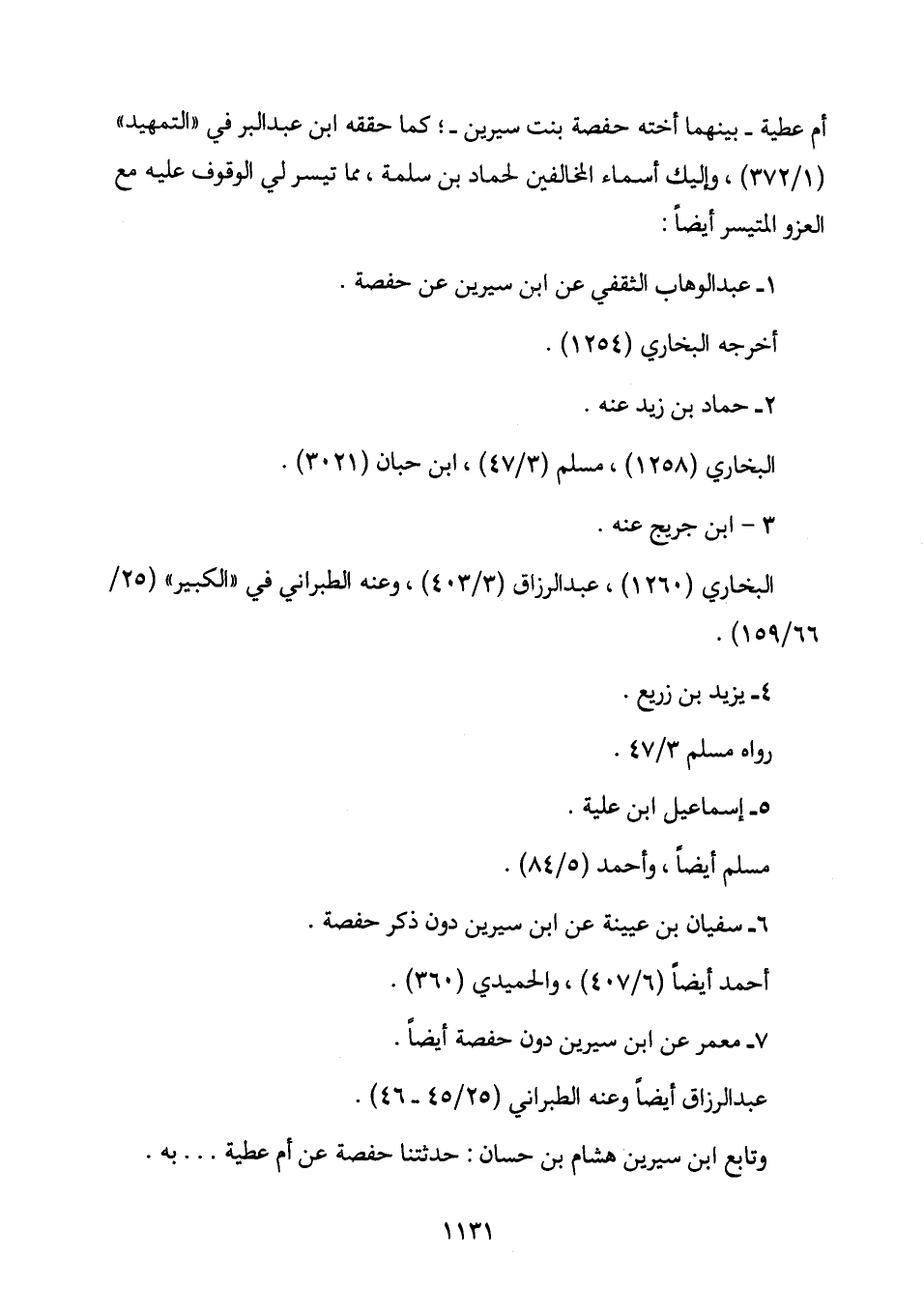 1 - عبد الوهاب الثقفي عن ابن سيرين عن حفصة.