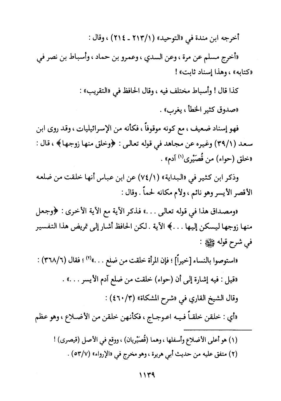 "خلق (حواء) من قُصَيْرى (1) آدم ".
