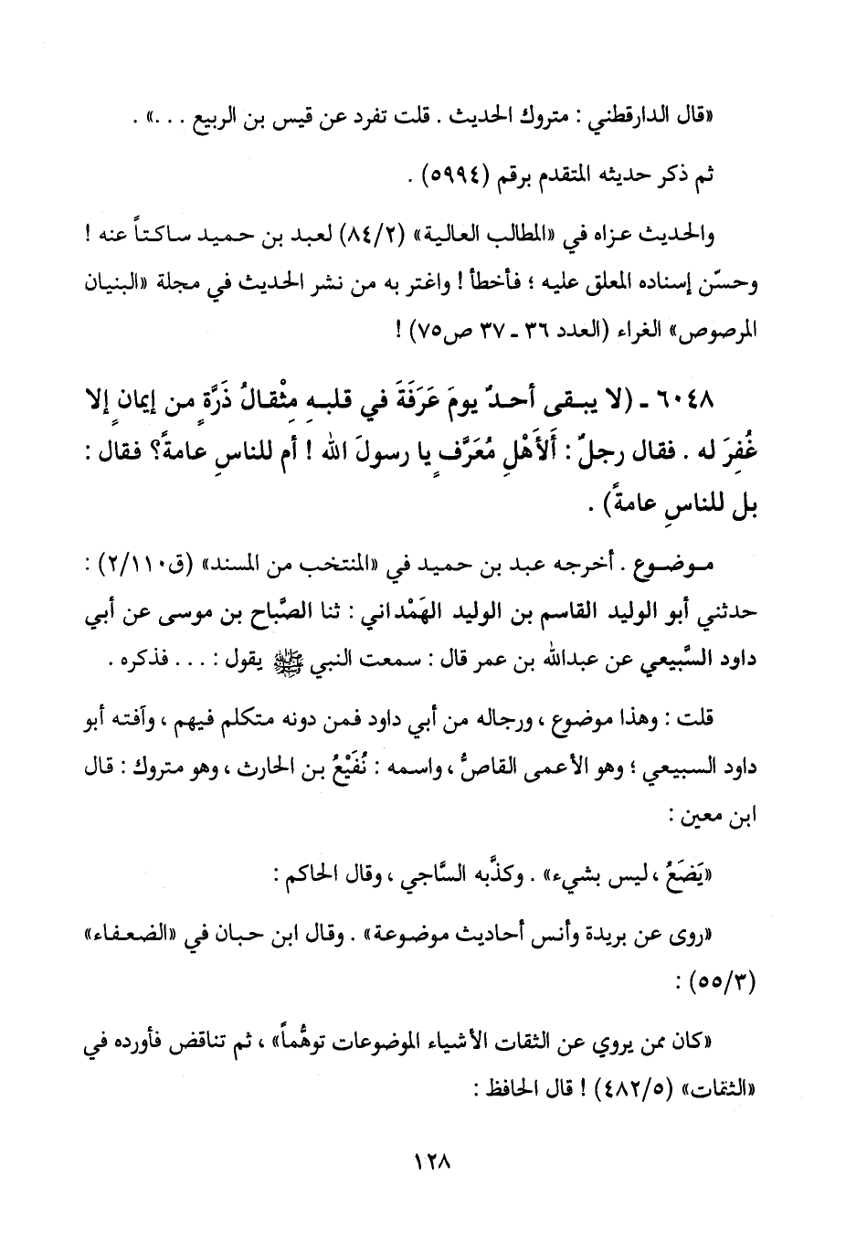 6048 - (لا يبقى أحدٌ يومَ عَرَفَةَ في قلبهِ مِثْقالُ ذَرَّةٍ من إيمانٍ إلا