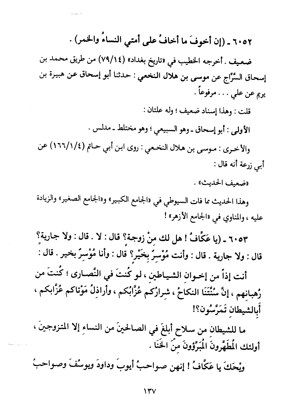 6053 - (يَا عَكَّافُ! هَلْ لَكَ مِنْ زَوْجَةٍ؟ قَالَ: لَا. قَالَ: وَلَا جَارِيَةٍ؟