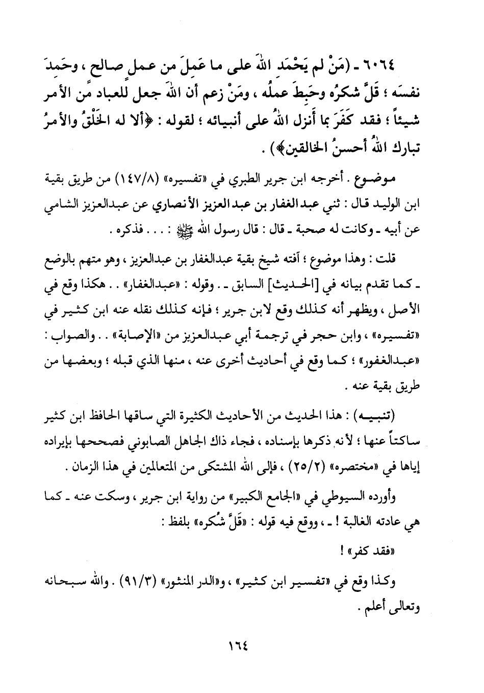 6064 - (مَنْ لم يَحْمِدِ اللهَ على ما عَمِلَ من عملٍ صالحٍ، وحَمِدَ