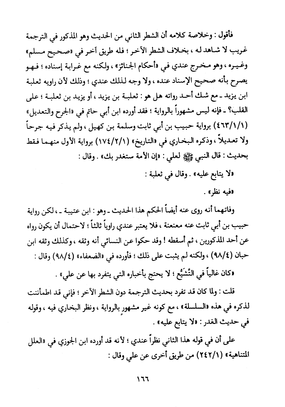 "لا يتابع عليه ". وقال في ثعلبة: