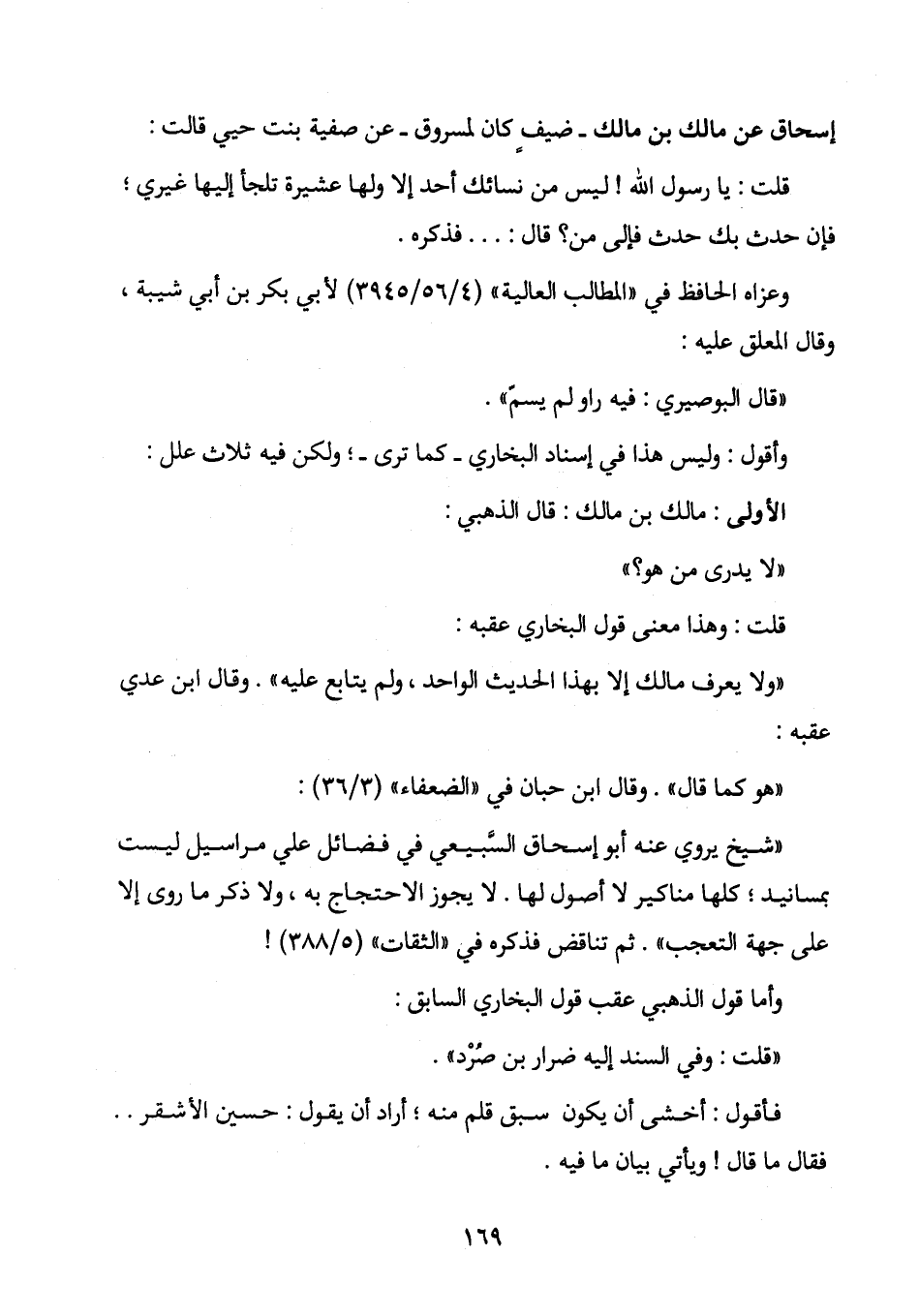 إسحاق عن مالك بن مالك - ضيفٍ كان لمسروق - عن صفية بنت حيي قالت: