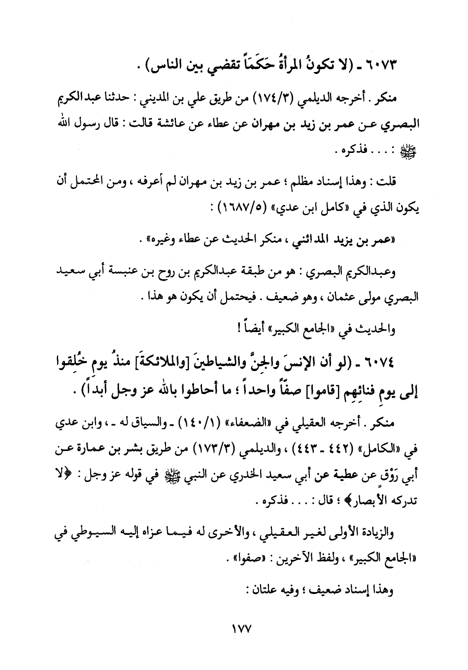 6073 - (لا تكونُ المرأةُ حَكَمَاً تقضي بين الناس) .