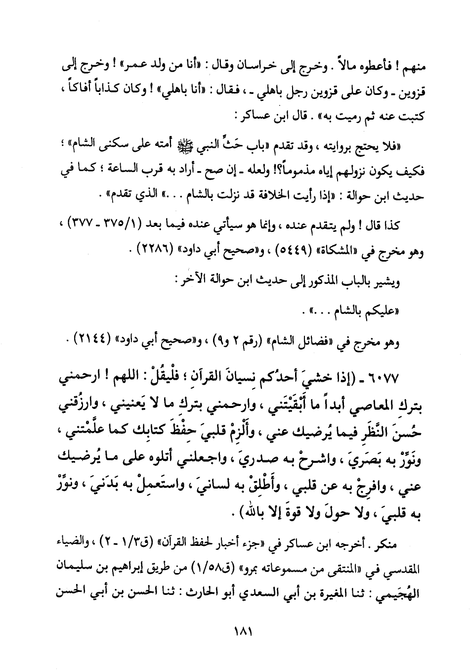 6077 - (إذا خشيَ أحدُكم نِسيانَ القرآنِ؛ فلْيَقُلْ: اللَّهُمَّ! ارْحَمْنِي