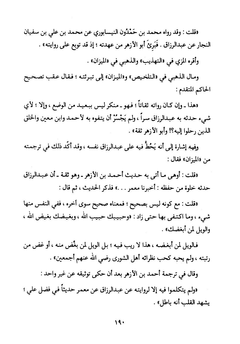 "وفيه إشارة إلى أنه يَحُطُّ فيه على عبد الرزاق نفسه، وقد أكّد ذلك في ترجمته