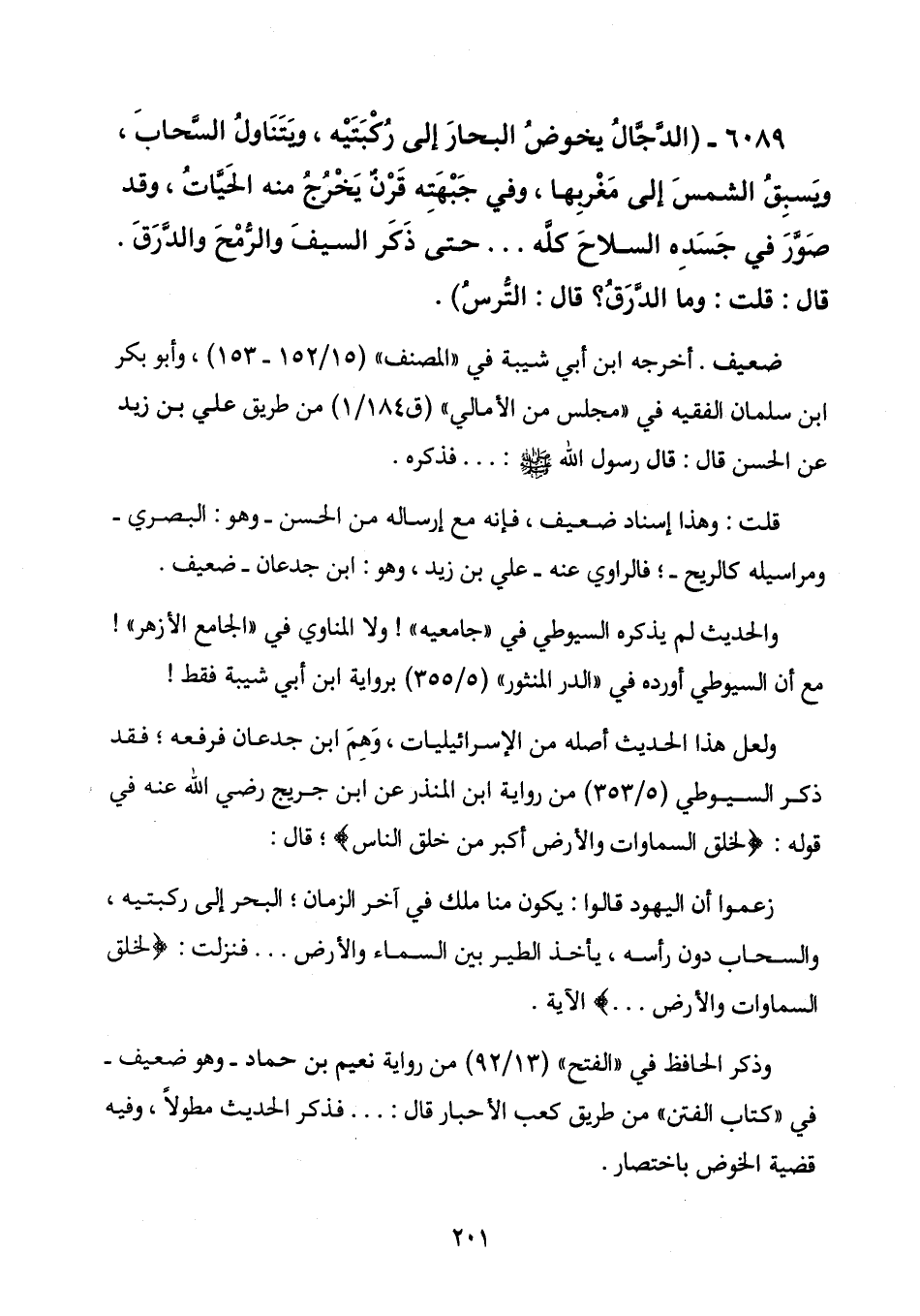 6089 - (الدَّجَّالُ يخوضُ البحارَ إلى ركبتيه، ويتناول السحاب،