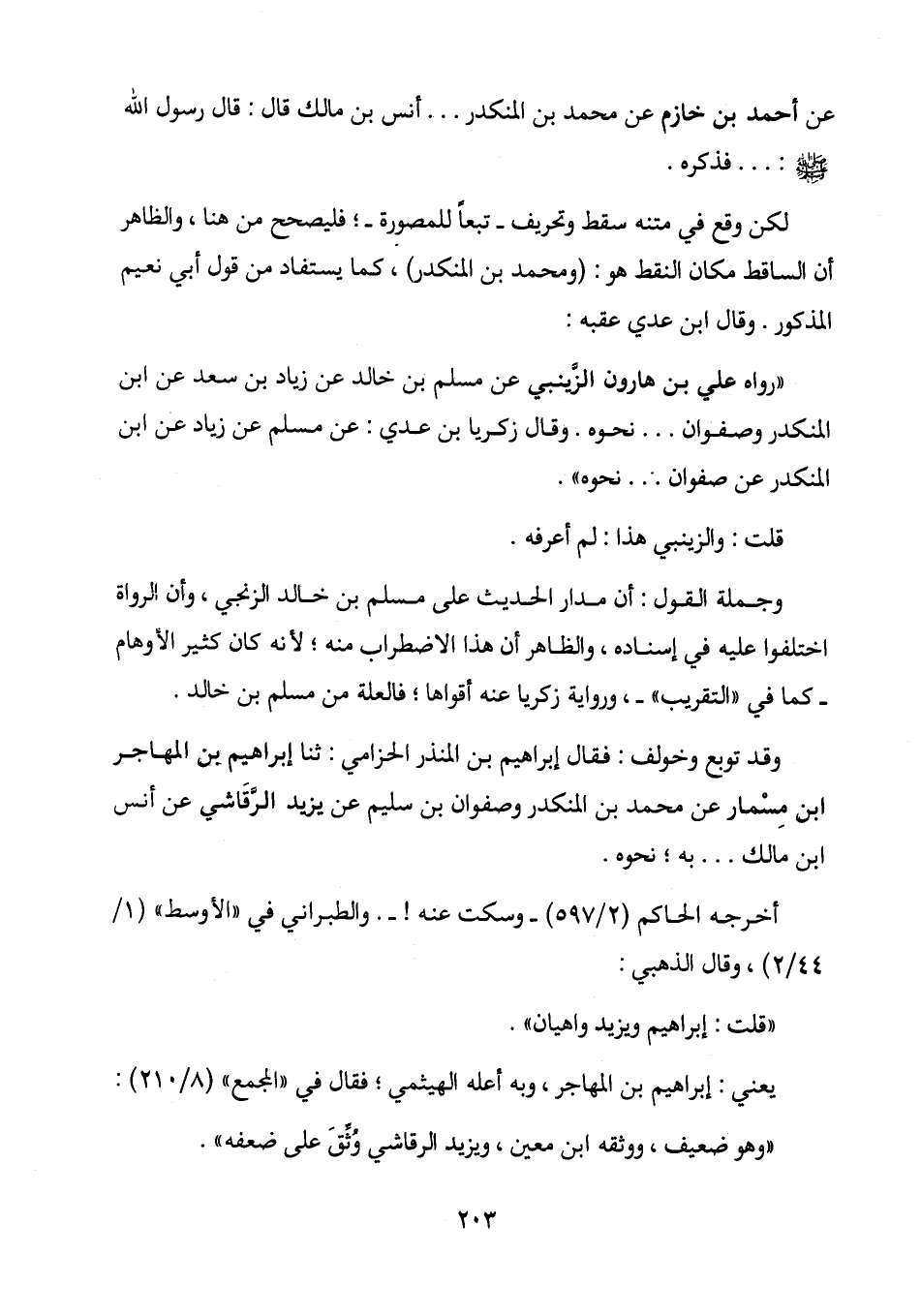 عن أحمد بن خازم عن محمد بن المنكدر ... أنس بن مالك قال: قال رسول اللَّهِ