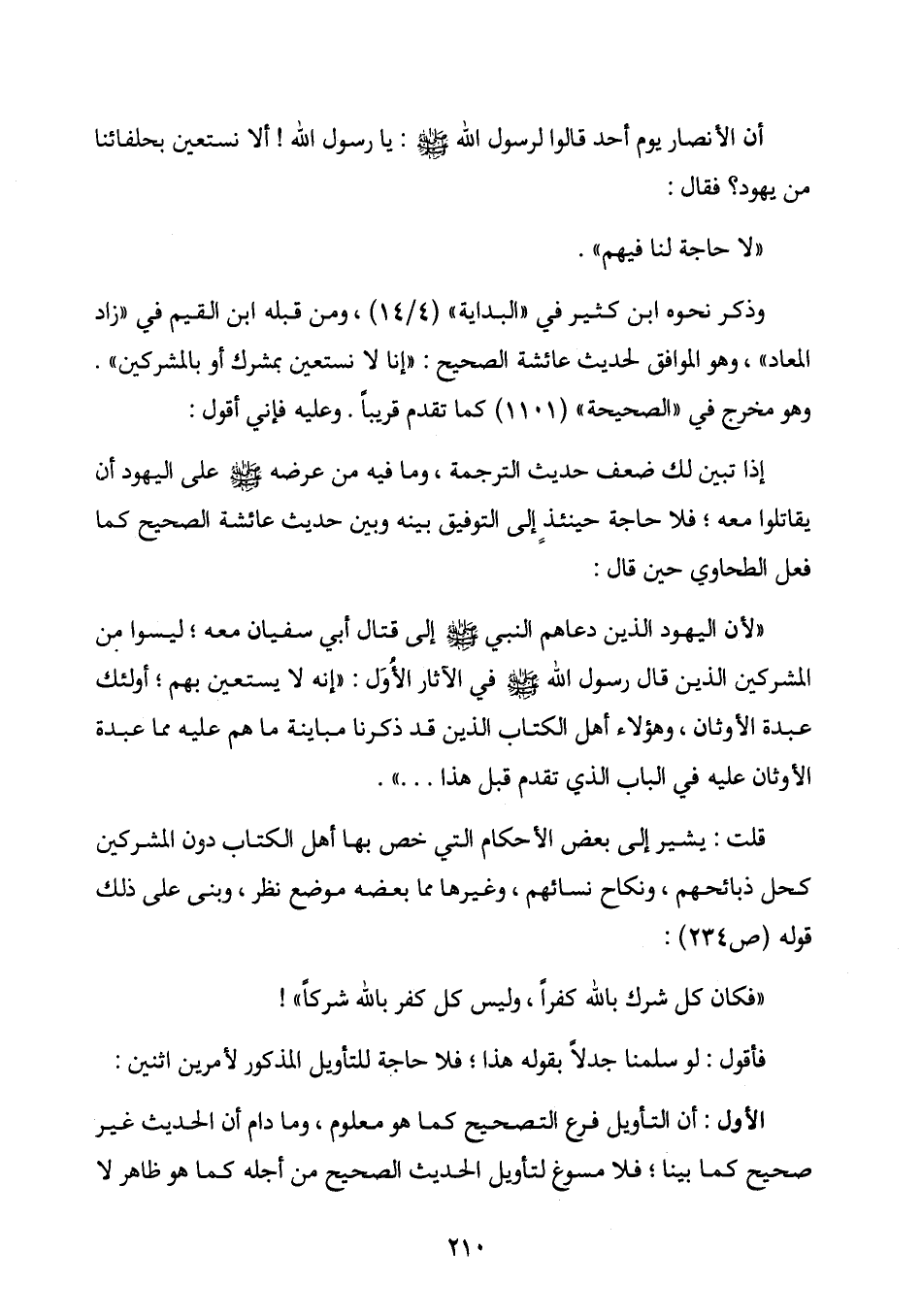 المعاد"، وهو الموافق لحديث عائشة الصحيح: " إنا لا نستعين بمشرك أو بالمشركين ".