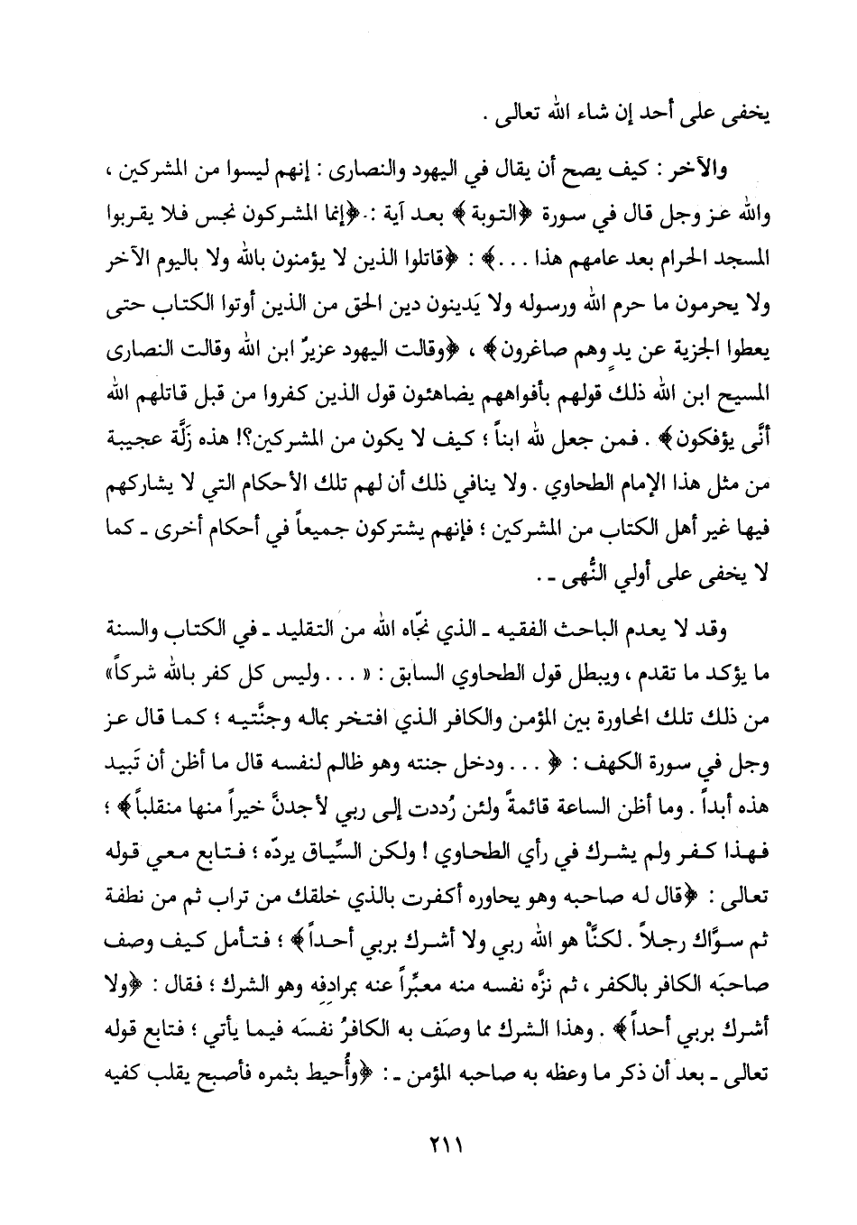 من مثل هذا الإمام الطحاوي. ولا ينافي ذلك أن لهم تلك الأحكام التي لا يشاركهم