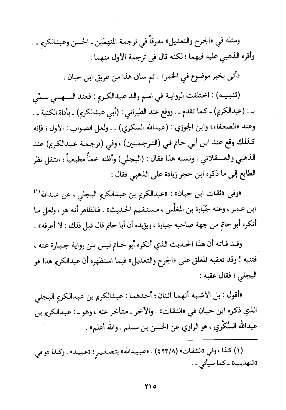 فتنبه! وقد تعقبه المعلق على "الجرح والتعديل " فيما استظهره أن عبد الكريم هذا هو
