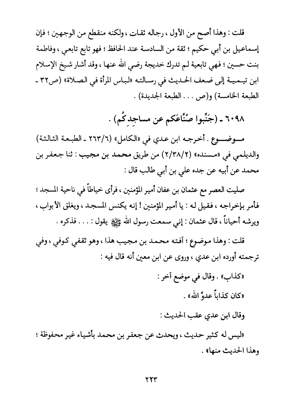 6098 - (جَنَّبوا صُنَّاعَكم عن مساجِدِكُم) .