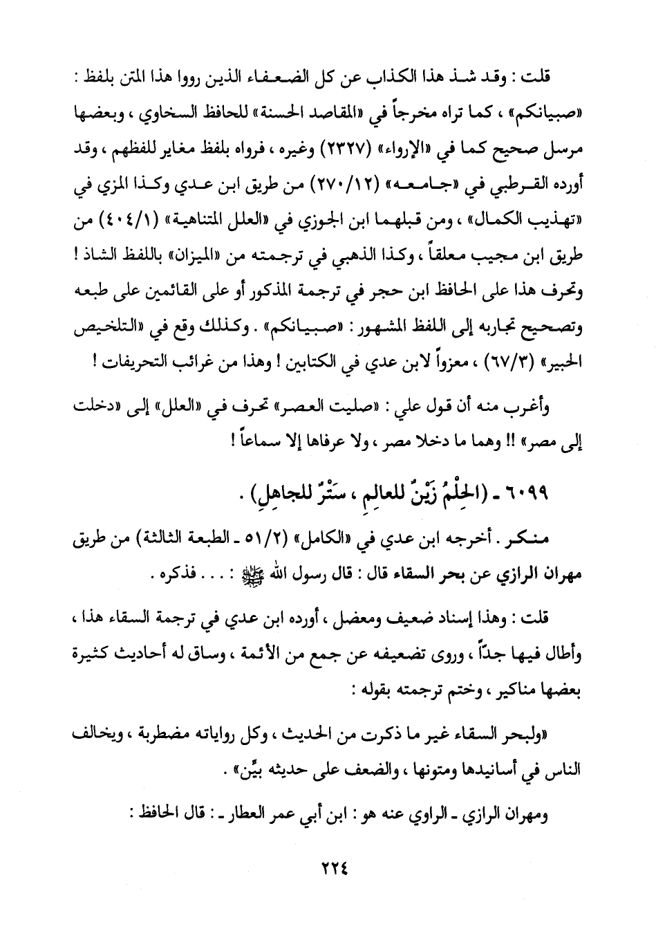 "صبيانكم "، كما تراه مخرجاً في "المقاصد الحسنة " للحافظ السخاوي، وبعضها