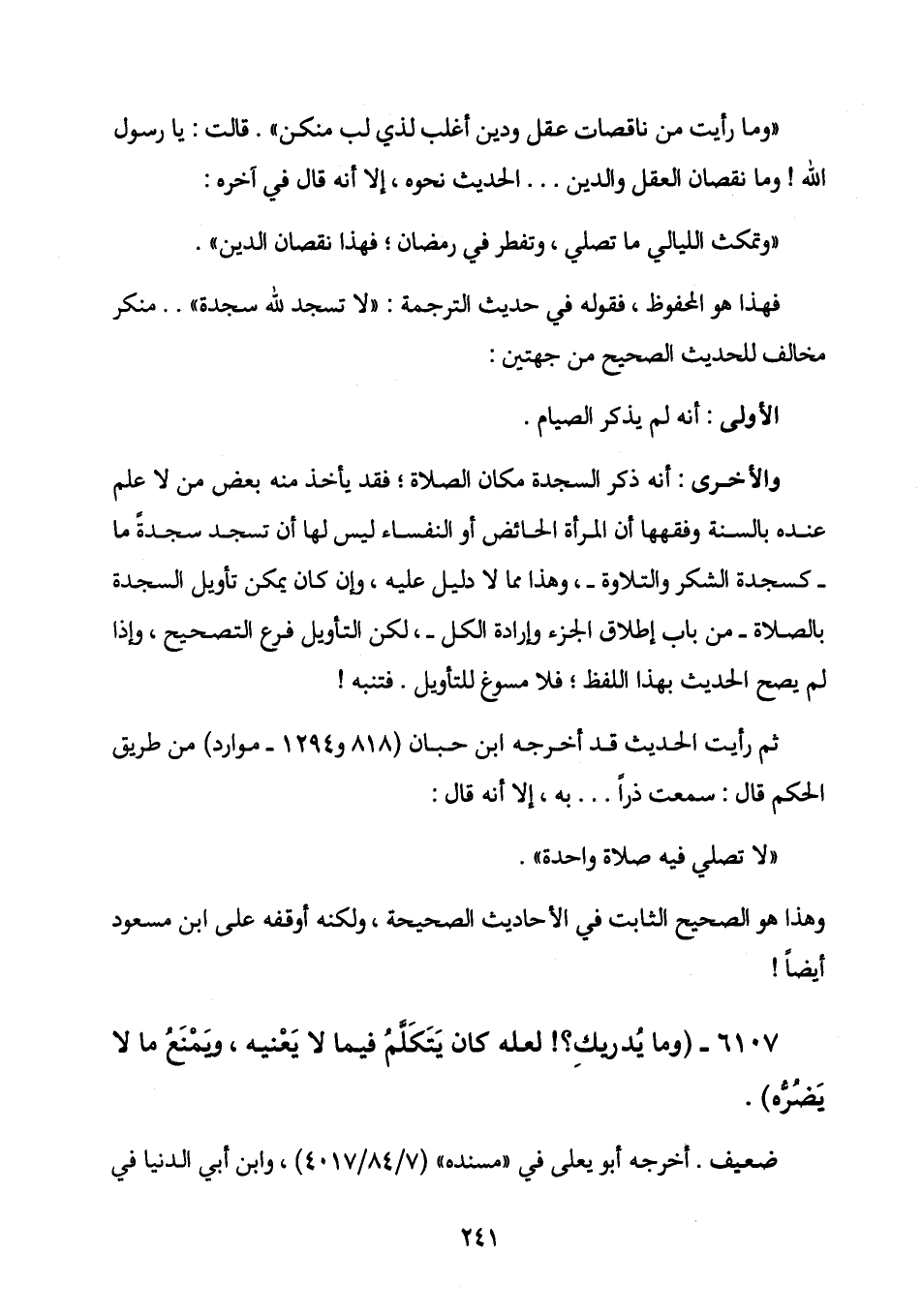 "وتمكث الليالي ما تصلي، وتفطر في رمضان؛ فهذا نقصان الدين ".