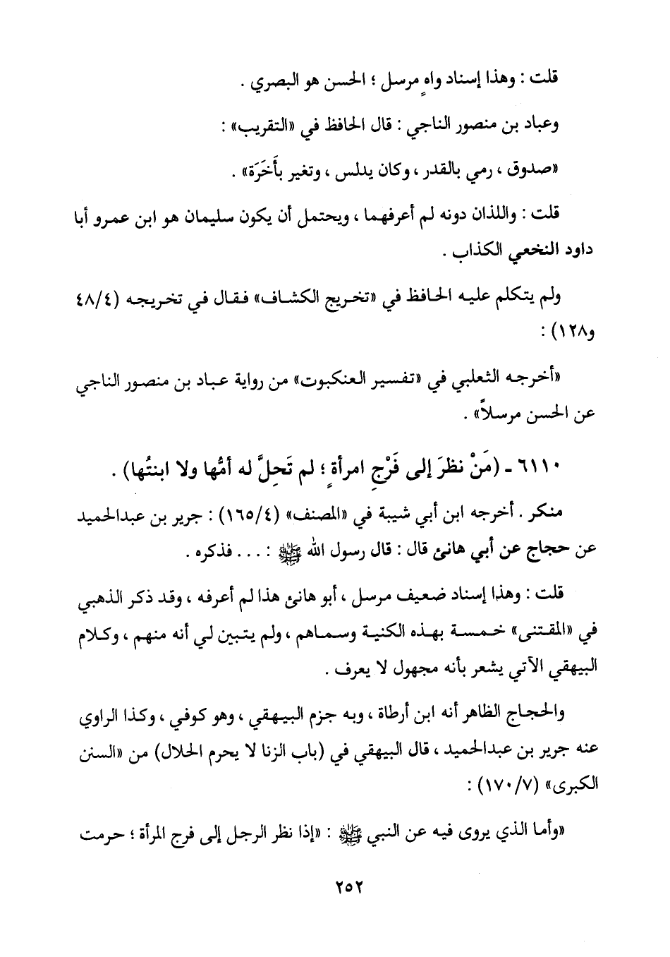 6110 - (مَن نظرَ إلى فرجِ امرأةٍ؛ لم تَحِلَّ له أمُّها ولا ابنتُها) .