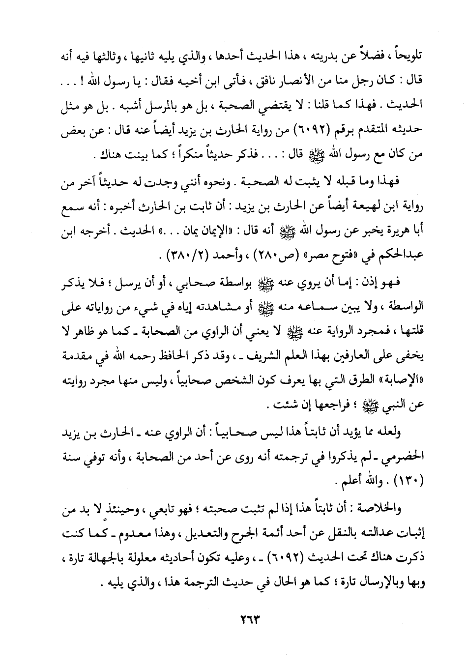 "الإصابة" الطرق التي بها يعرف كون الشخص صحابياً، وليس منها مجرد روايته