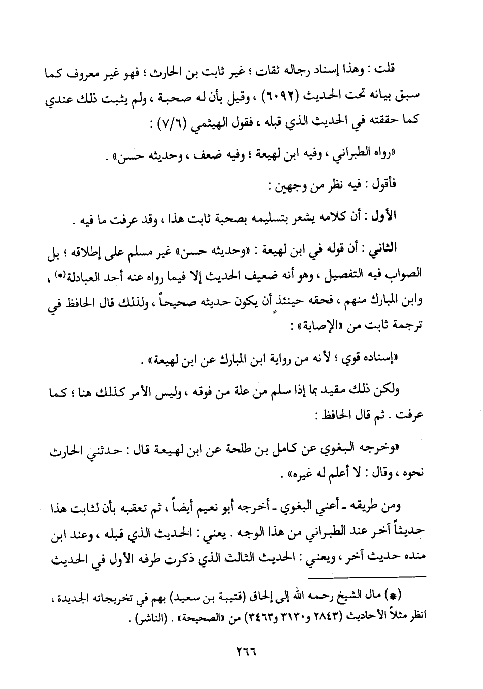 الثاني: أن قوله في ابن لهيعة: "وحديثه حسن " غير مسلم على إطلاقه؛ بل