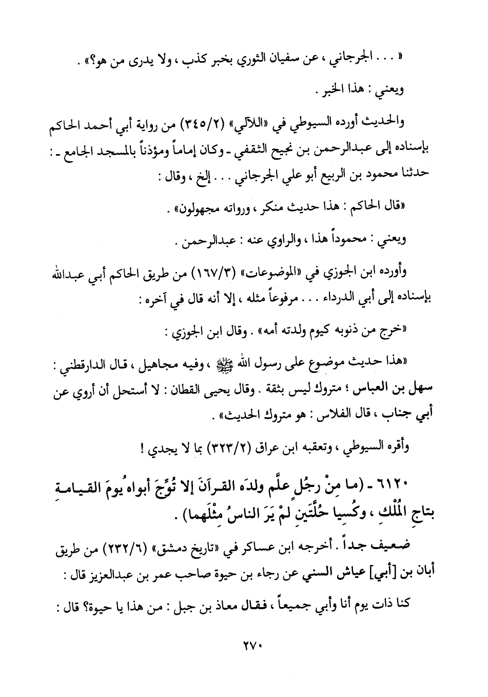 6120 - (ما مِنْ رجلٍ علَّم ولده القرآن إلا تُوِّجَ أبواه يوم القيامةِ